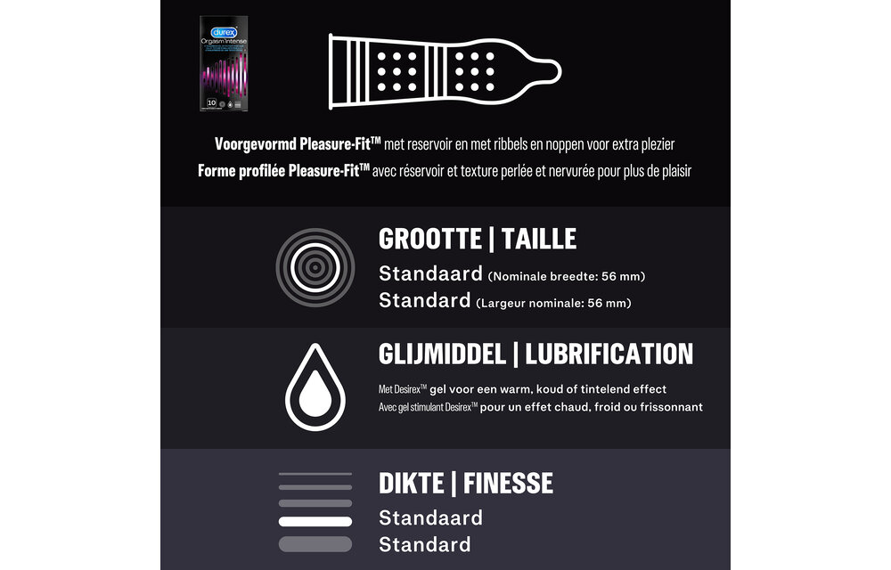 Durex - 10 stuks Condooms - Orgasm Intense - 110ml Glijmiddel - Intense Orgasm 10ml - Perfect Gliss 100ml - Voordeelverpakking